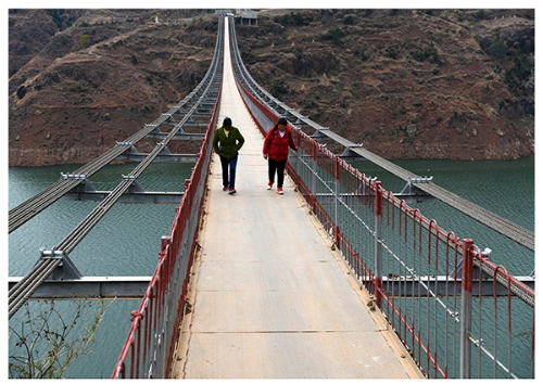 ????2019年12月11日,云南省會(huì)澤縣馬路鄉(xiāng)的村民通過跨江人行橋到貴州省威寧縣。楊文斌 攝