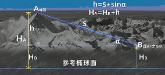 1847年,英屬印度測量局在離珠峰300多公里外的恒河平原上,利用三角高程測量方法對珠峰高度進行了首次測量,測得高程為8778米。所謂三角高程測量方法,就是在位于山腳的地面測站架設(shè)光學(xué)測量儀器,專業(yè)測量人員照準珠峰峰頂雪面,測量地面測站到峰頂?shù)木嚯x,再測量峰頂?shù)母叨冉?,也就是觀測視線與水平面之間的夾角,最后按照三角函數(shù)關(guān)系計算出珠峰高度。