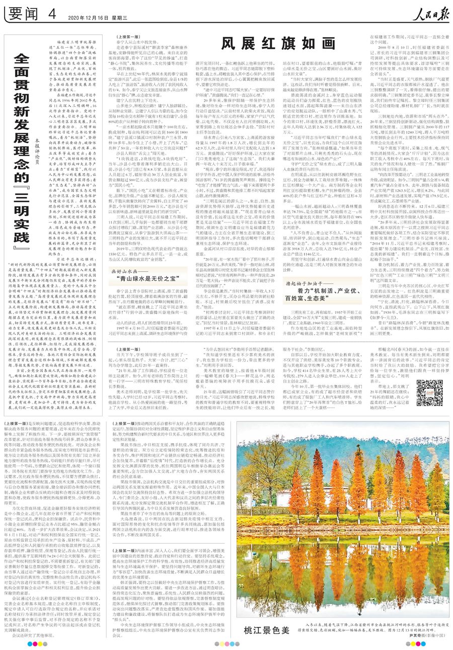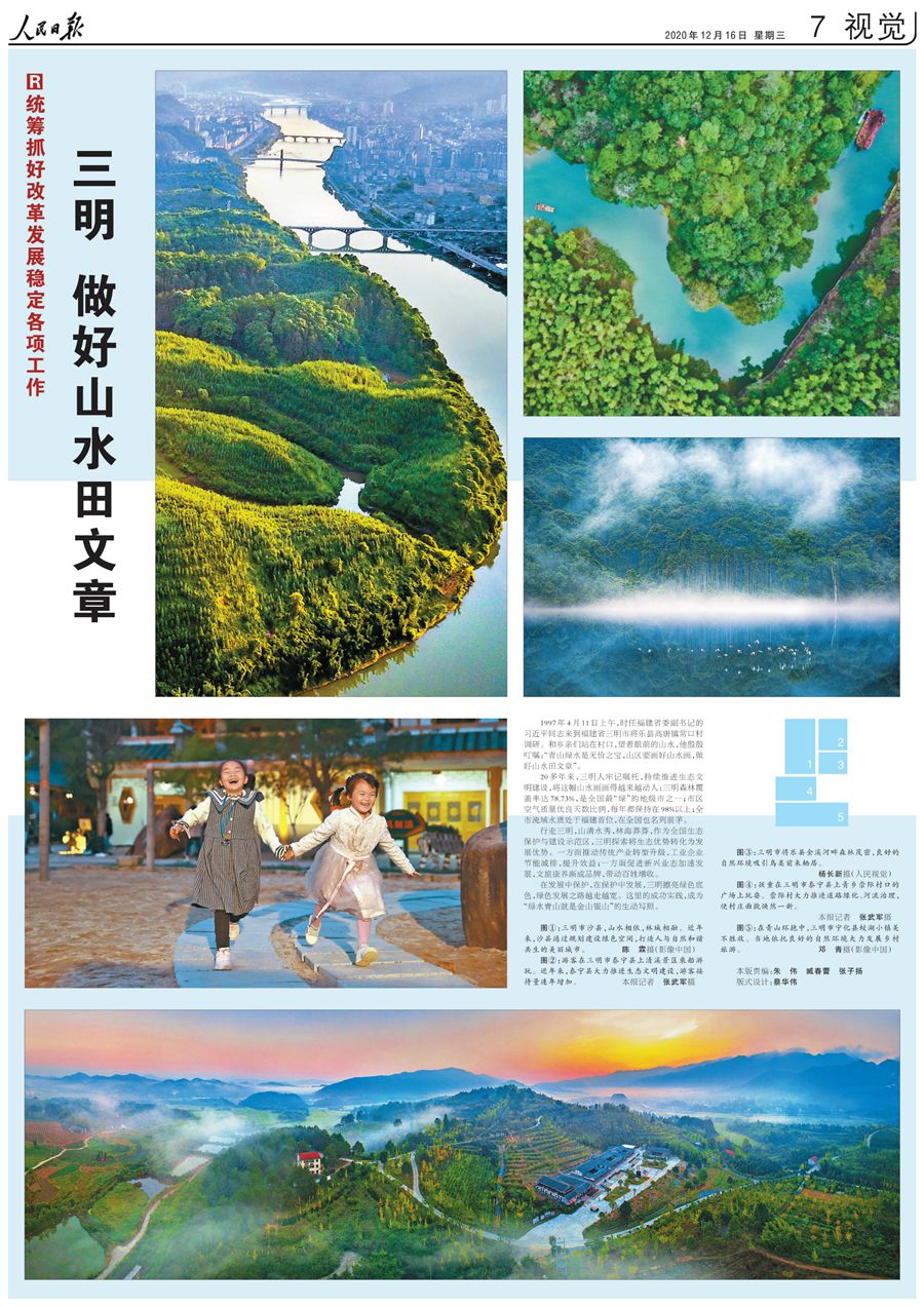 福建省三明市統(tǒng)籌推進(jìn)“五位一體”總體布局、協(xié)調(diào)推進(jìn)“四個(gè)全面”戰(zhàn)略布局,以全面貫徹落實(shí)新發(fā)展理念的生動(dòng)實(shí)踐,展現(xiàn)了機(jī)制活、產(chǎn)業(yè)優(yōu)、百姓富、生態(tài)美的生動(dòng)畫卷,對(duì)于各地更好貫徹新發(fā)展理念、推動(dòng)高質(zhì)量發(fā)展具有重要啟示意義。今天人民日?qǐng)?bào)推出多篇報(bào)道,刊發(fā)評(píng)論員文章,聚焦三明的探索和實(shí)踐。