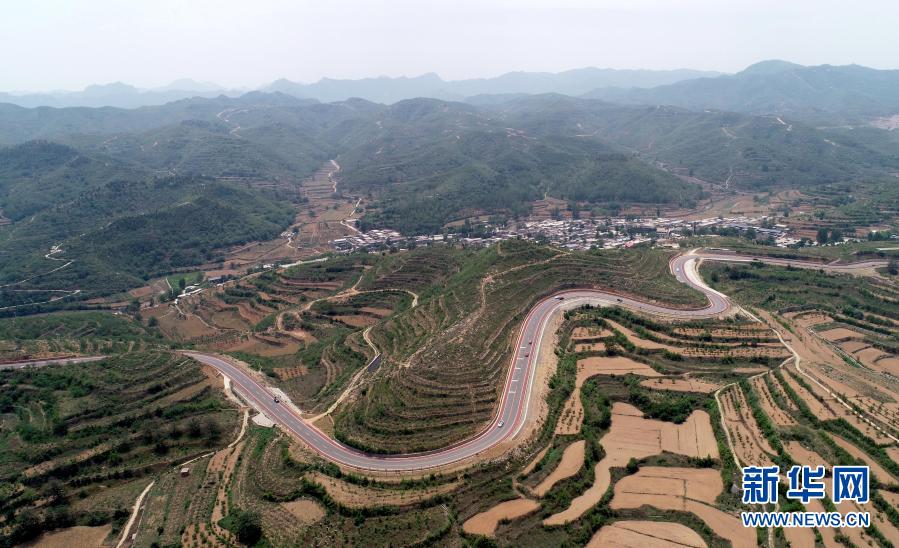 這是6月7日拍攝的“井陘太行天路”(無人機照片)。這條旅游專用公路將井陘縣的26個古村落串連在一起。新華社發(fā)(梁子棟 攝)