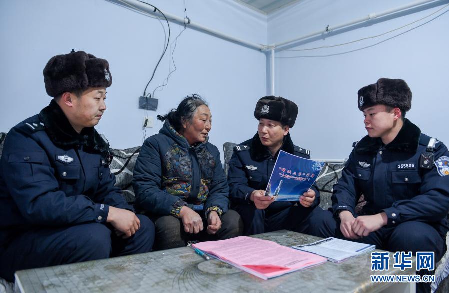 12月15日,內(nèi)蒙古烏蘭察布邊境管理支隊(duì)腦木更邊境派出所民警向當(dāng)?shù)啬撩裥麄鞣祷仄骰厥掌陂g的安全注意事項(xiàng)。新華社記者 連振 攝
