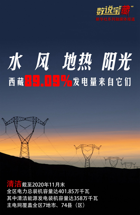 西藏自治區(qū)發(fā)展改革委的數(shù)據(jù)顯示,近年來西藏發(fā)電能力大幅增長,截至2020年11月末,全區(qū)電力總裝機容量達401.85萬千瓦,其中清潔能源板塊增長迅速,同期水電、風(fēng)電、地熱以及太陽能光伏發(fā)電裝機容量達358萬千瓦,清潔能源在發(fā)電裝機容量中的占比達89.09%。