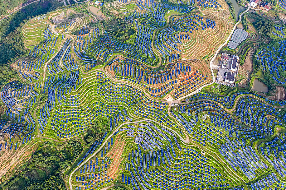 ????浙江省麗水市縉云縣充分利用列入浙江省首批清潔能源示范縣創(chuàng)建的契機,積極挖掘現(xiàn)有可再生能源資源,認(rèn)真謀劃“光伏助村”“光伏助困”“光伏助農(nóng)”“光伏助企”“光伏助學(xué)”等“光伏+”模式,成功探索出“可實施、可推廣、可復(fù)制、可示范”的光伏發(fā)電發(fā)展的新模式,實現(xiàn)可再生能源項目開發(fā)與服務(wù)民生的有機結(jié)合。嵌在深山上的片片光伏成為了當(dāng)?shù)剞r(nóng)村農(nóng)民的致富星。 徐景蓉 攝