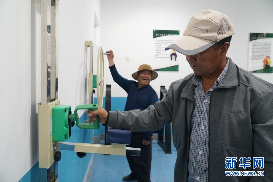 8月13日,在西寧市湟中區(qū)多巴鎮(zhèn)黑嘴村老年之家里,老人們在健身室內鍛煉身體。新華社記者 張子琪 攝