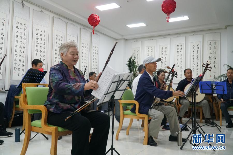 8月21日,在西寧市城西區(qū)光華路社區(qū)日間照料中心,老人們在活動室排練節(jié)目。新華社記者 張子琪 攝
