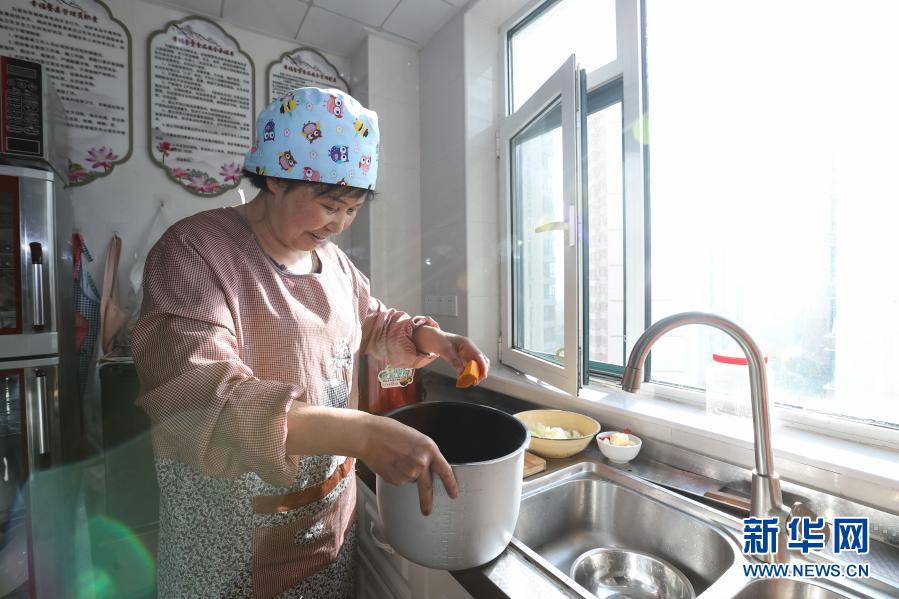 10月22日,西寧市城西區(qū)溫馨陽光托老所內,護理員張蓉霞在為老人們做飯。新華社記者 吳剛 攝