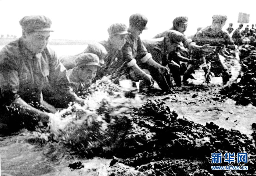 西昌衛(wèi)星發(fā)射中心西昌發(fā)射場建設(shè)初期,老一輩航天人在安寧河中搶建長征橋(資料圖片)。新華社發(fā)