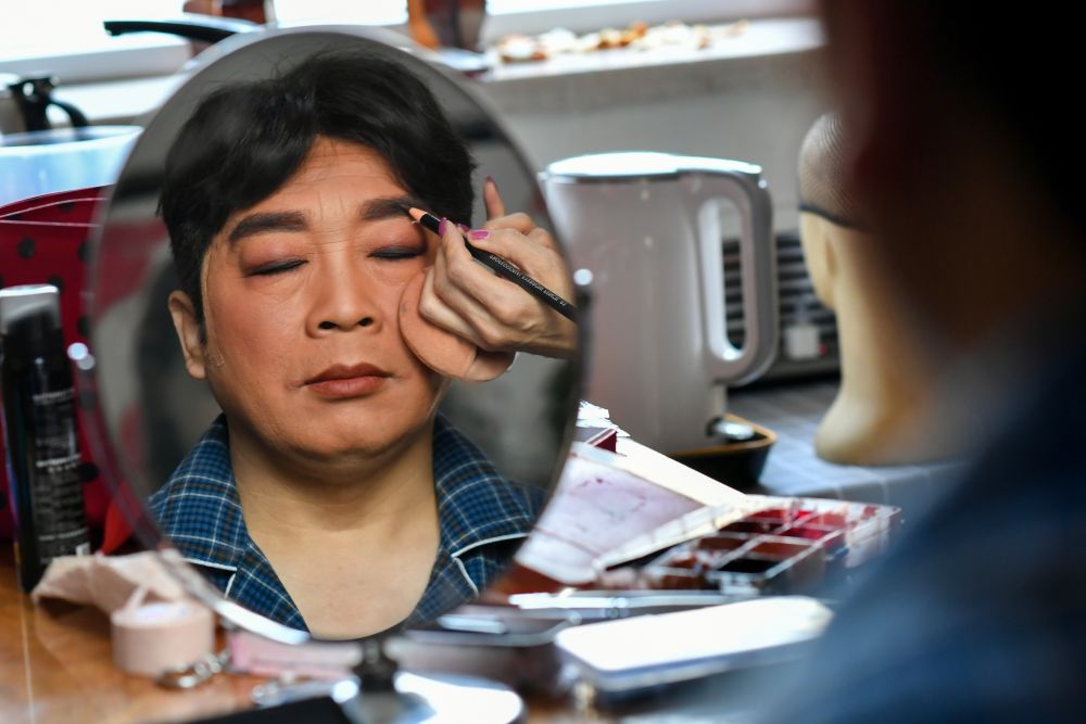 在各個(gè)舞臺間轉(zhuǎn)場的間隙,武凌云帶著戲劇妝容,向記者講述了一年來的生活。