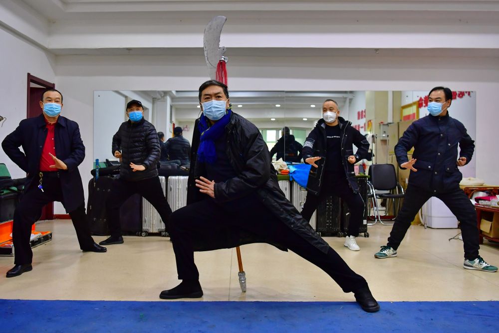 武凌云(中)在太原市晉劇藝術(shù)研究院排練晉?。?月9日攝)。