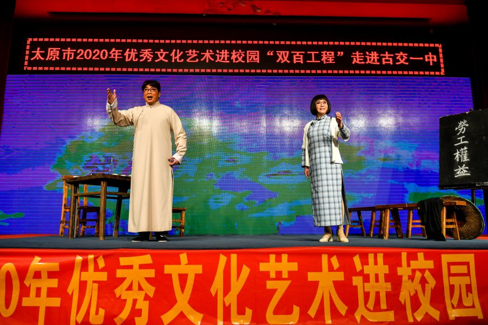 12月17日,武凌云、王春梅夫妻在古交市第一中學(xué)表演晉劇《高君宇與石評梅》。