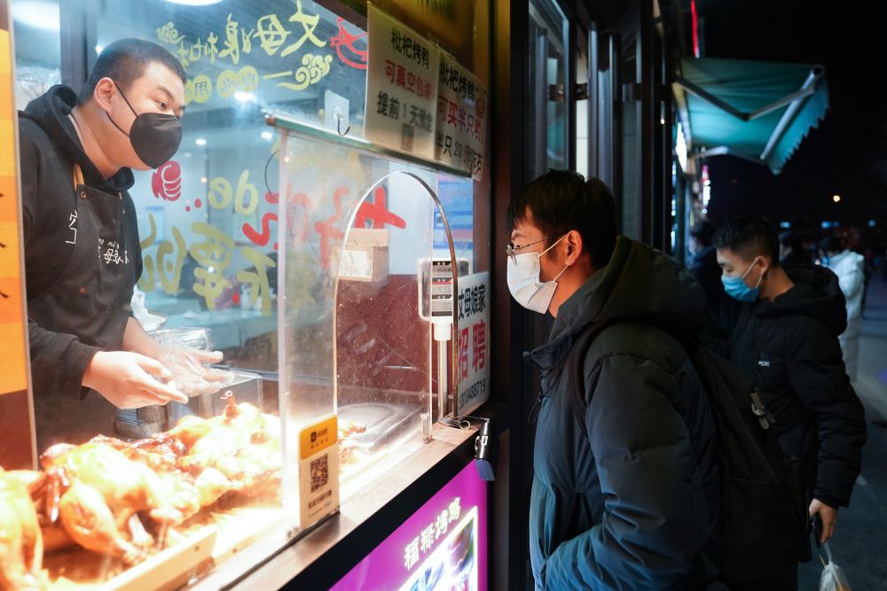 ??12月16日,陳安心(左二)回家路上購買晚餐。