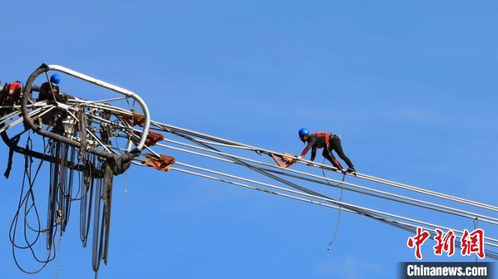 施工人員正在開(kāi)展線上作業(yè)施工?!盍?攝