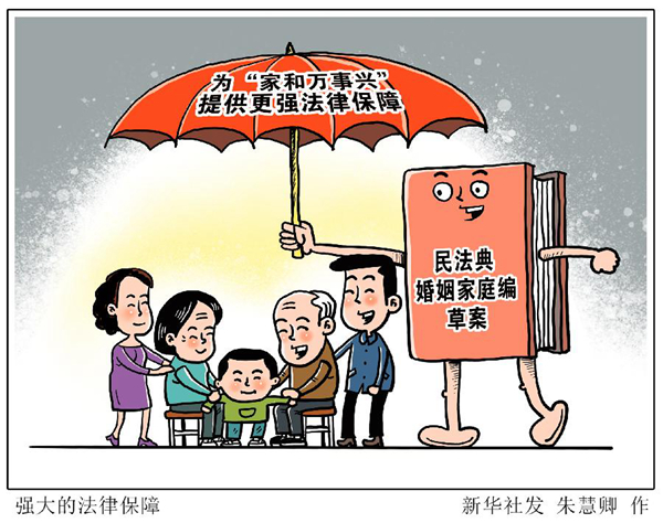 常言道:“家和萬事興”。個人婚姻家庭關(guān)系的和睦與否,與全社會的和諧穩(wěn)定息息相關(guān)。從注重“家風”建設(shè),到加大權(quán)益保護力度,即將提請全國人代會審議的民法典草案,是我國婚姻家庭立法進程中的重要里程碑。