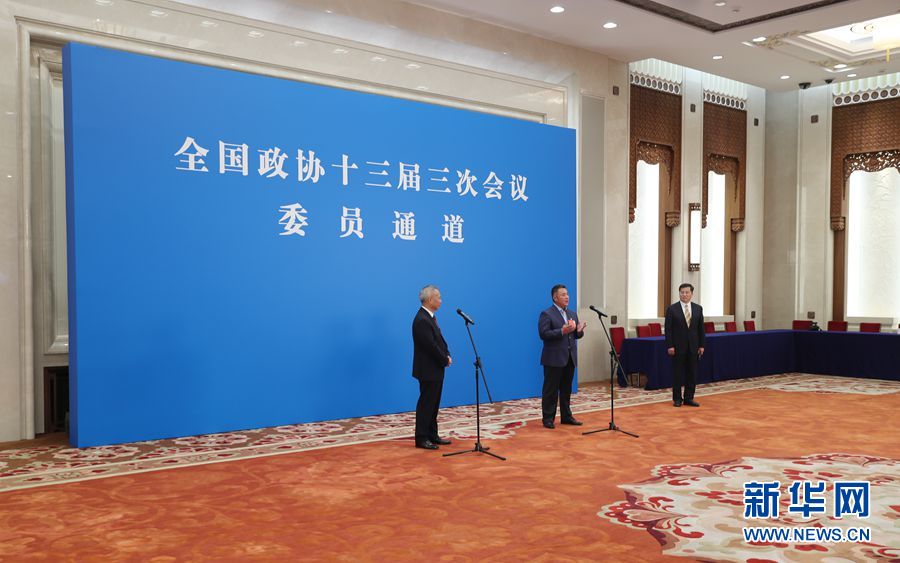 全國(guó)政協(xié)十三屆三次會(huì)議首場(chǎng)“委員通道”采訪活動(dòng)于5月21日在人民大會(huì)堂新聞發(fā)布廳舉行,邀請(qǐng)部分全國(guó)政協(xié)委員通過(guò)網(wǎng)絡(luò)視頻方式接受媒體采訪。圖為“委員通道”現(xiàn)場(chǎng)。新華網(wǎng) 王翰林 攝