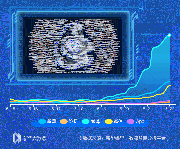 政府工作報告出爐,傳播有多“火爆”?新華睿思數(shù)據(jù)顯示,22日9時-14時,互聯(lián)網(wǎng)上政府工作報告的相關(guān)信息超30萬條,且話題熱度持續(xù)高漲。此外,從信息的傳播平臺和路徑演化來看,中央和地方媒體聚合發(fā)力,以國家重點新聞網(wǎng)站為中心,多點擴散、融合傳播效應(yīng)顯著。