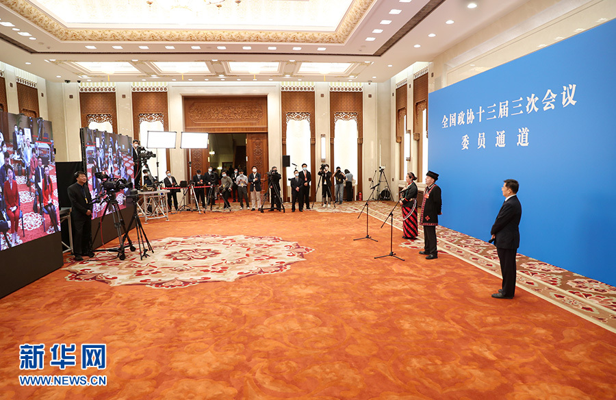 5月24日,在北京人民大會(huì)堂新聞發(fā)布廳舉行全國政協(xié)十三屆三次會(huì)議第二場“委員通道”采訪活動(dòng)。這是“委員通道”采訪活動(dòng)現(xiàn)場。 新華網(wǎng) 翟子赫 攝