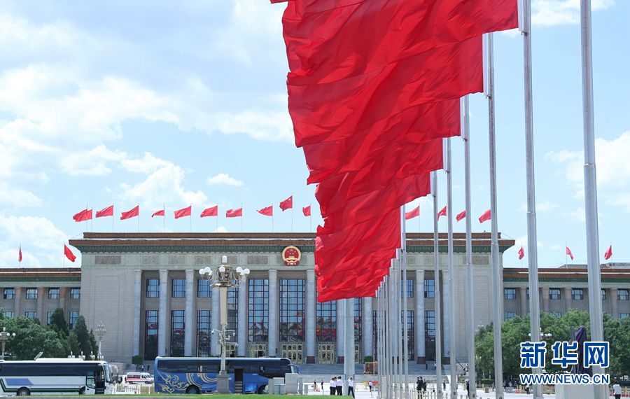 5月27日,中國人民政治協(xié)商會議第十三屆全國委員會第三次會議在北京人民大會堂舉行閉幕會。這是天安門廣場上紅旗飄揚(yáng)。 新華網(wǎng) 翟子赫 攝