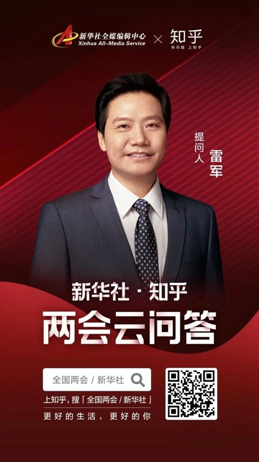 今年兩會期間,新華社聯(lián)合知乎發(fā)起《兩會云問答》活動,雷軍提了兩個環(huán)環(huán)相扣的問題:“未來幾年,科技領域會有哪些重大突破?將會為哪些行業(yè)帶來新機遇?”