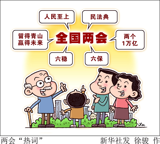 特殊時期召開的大會,舉世矚目。近5000名代表委員議國是、獻(xiàn)良策,面對挑戰(zhàn)尋新機(jī),察變局開新局,“人民至上”“六穩(wěn)”“六?!薄傲舻们嗌?,贏得未來”“民法典”“兩個1萬億”等一系列“熱詞”激蕩在兩會、熔鑄進(jìn)歷史。