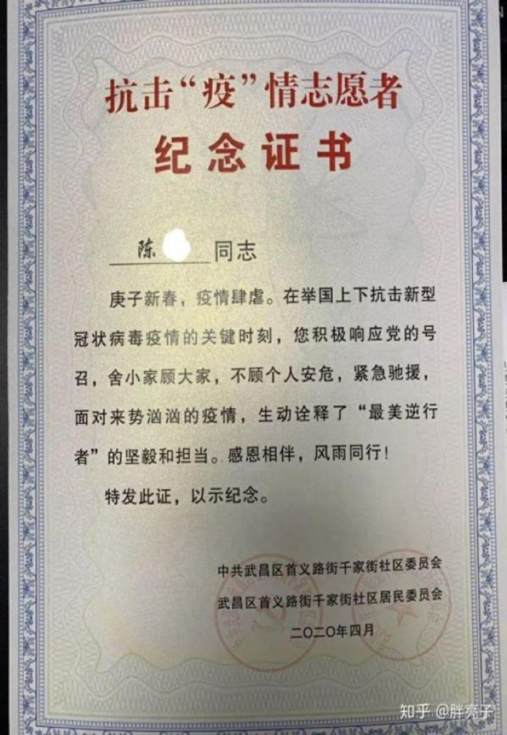 在武漢,網(wǎng)友“胖亮子”說,2月底,他的妻子接到下沉社區(qū)做志愿者的通知,可以自愿選擇,但她很快答應(yīng)了。“平時(shí)有點(diǎn)潔癖而且膽小的老婆在這個(gè)時(shí)候能夠挺身而出,讓我刮目相看?!?