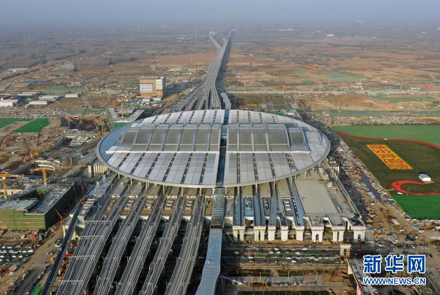這是2020年12月23日拍攝的京雄城際鐵路雄安站(無人機照片)。12月27日,北京至雄安新區(qū)城際鐵路大興機場至雄安新區(qū)段開通運營,京雄城際鐵路實現(xiàn)全線貫通,雄安站同步投入使用。