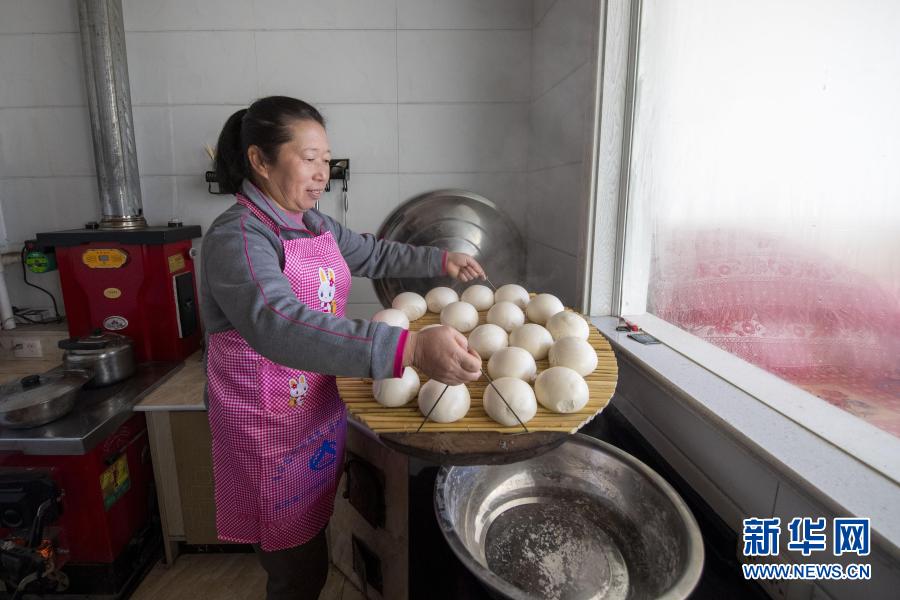 2020年12月31日,李三花在嵐縣普明鎮(zhèn)普明村的家里蒸饅頭。新華社記者 楊晨光 攝