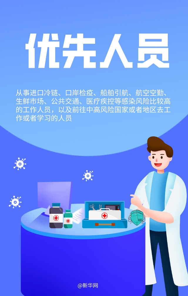 1月1日起,部分地區(qū)重點(diǎn)人群開始接種我國首批新冠病毒疫苗。哪些人員優(yōu)先接種?接種疫苗需要打幾針?哪些人不適合接種?接種疫苗后是否需要繼續(xù)戴口罩?十個(gè)關(guān)鍵詞帶你了解新冠病毒疫苗接種要點(diǎn)。