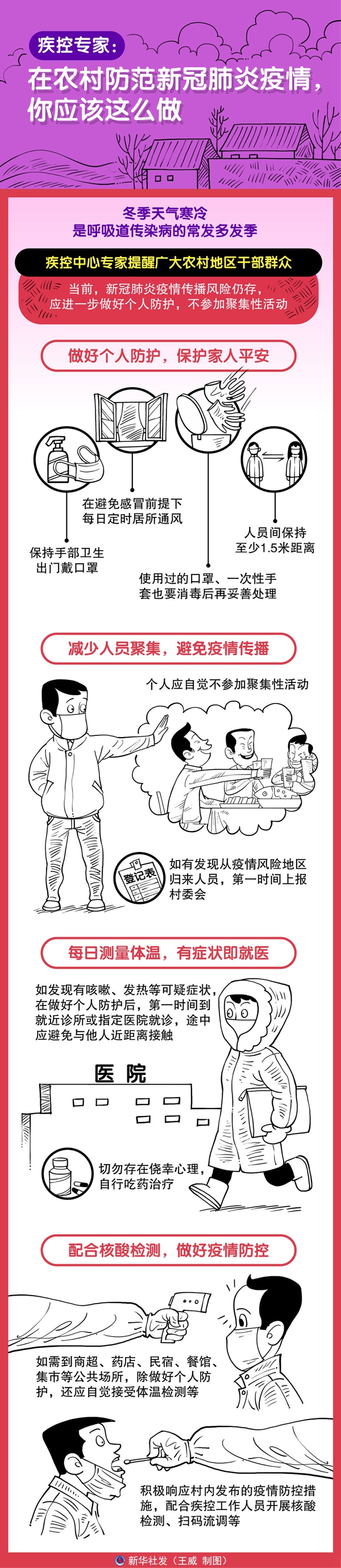 配合核酸檢測,做好疫情防控。如需到商超、藥店、民宿、餐館、集市等公共場所,除做好個人防護,還應(yīng)自覺接受體溫檢測等。同時,積極響應(yīng)村內(nèi)發(fā)布的疫情防控措施,配合疾控工作人員開展核酸檢測、掃碼流調(diào)等。