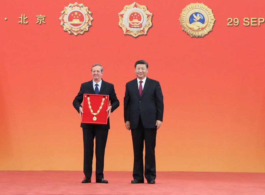 (圖為2019年9月29日,習(xí)近平向古共中央第一書(shū)記勞爾·卡斯特羅頒授“友誼勛章”,時(shí)任古巴駐華大使拉米雷斯代領(lǐng)。新華社記者 王曄 攝)