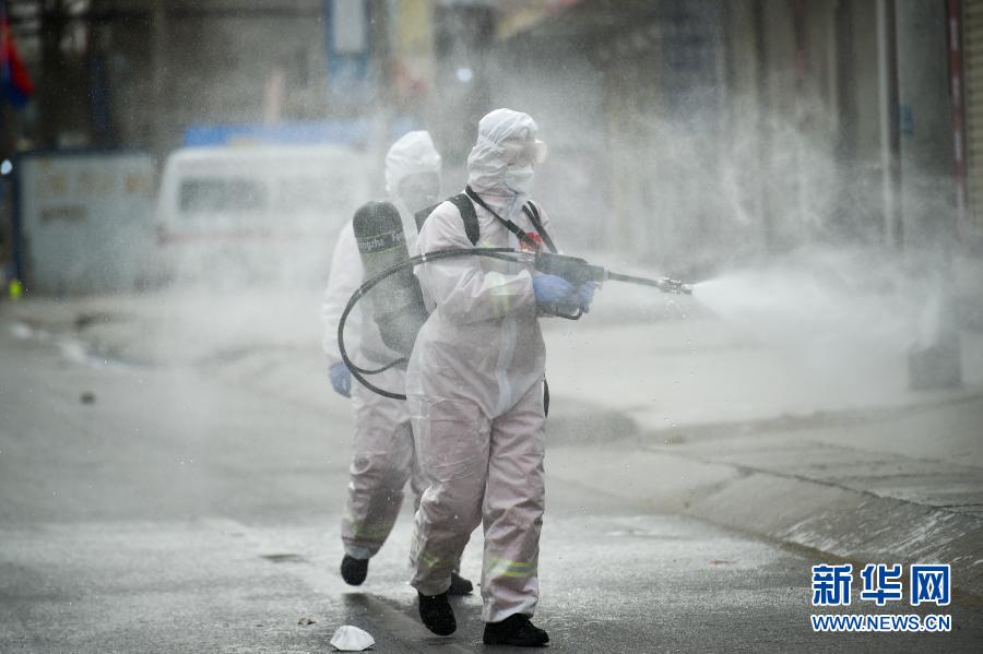 1月15日,在河北省石家莊市藁城區(qū)禪房村,防疫工作人員使用農(nóng)用噴霧機(jī)進(jìn)行消殺。新華社發(fā)(趙杰 攝)