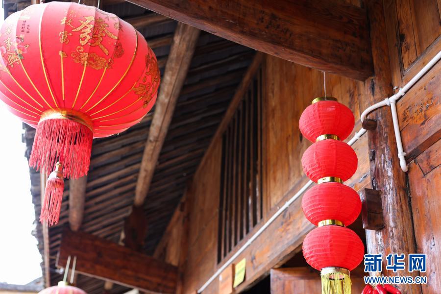 這是2月3日在湖南省湘西土家族苗族自治州花垣縣十八洞村一戶村民家門口拍攝的紅燈籠。 新華社記者 陳思汗 攝