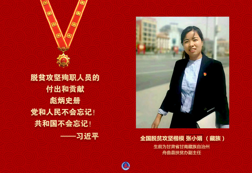 張小娟同志是在習近平新時代中國特色社會主義思想指引下成長起來的優(yōu)秀共產(chǎn)黨員,是在脫貧攻堅一線不懈奮斗的優(yōu)秀青年干部。2019年10月7日,在舟曲縣貧困鄉(xiāng)鎮(zhèn)脫貧攻堅驗收結(jié)束返回縣城途中因交通事故不幸殉職,年僅34歲。