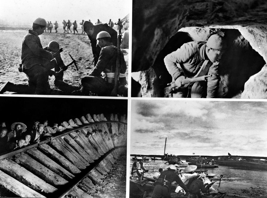 在反“掃蕩”、反“清鄉(xiāng)”的斗爭(zhēng)中,華北平原敵后軍民創(chuàng)造了很多有效的殲敵方法,發(fā)展了人民戰(zhàn)爭(zhēng)的戰(zhàn)略戰(zhàn)術(shù),狠狠打擊了日寇。上圖左:地雷戰(zhàn)。上圖右:地道戰(zhàn)。下圖左:破襲戰(zhàn)。下圖右:水上游擊戰(zhàn)。 新華社圖片