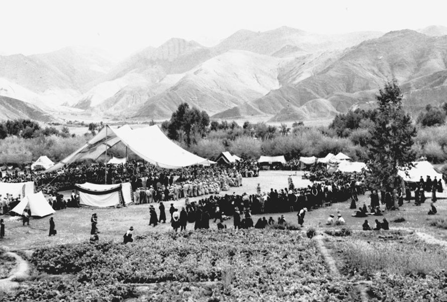 1951年9月,人民解放軍入藏先遣部隊抵達(dá)拉薩城郊。西藏地方政府在拉薩河畔搭起了巨大的白色帳篷,設(shè)立了十里長亭,隆重?zé)崃覛g迎解放軍入城。 新華社圖片