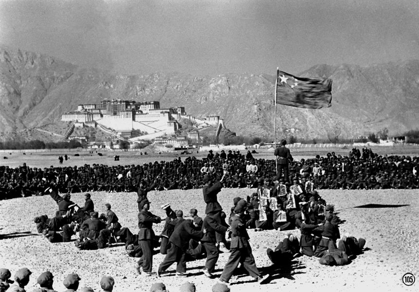 西藏和平解放后,人民解放軍與藏民在布達(dá)拉宮前歡度新年。 新華社圖片