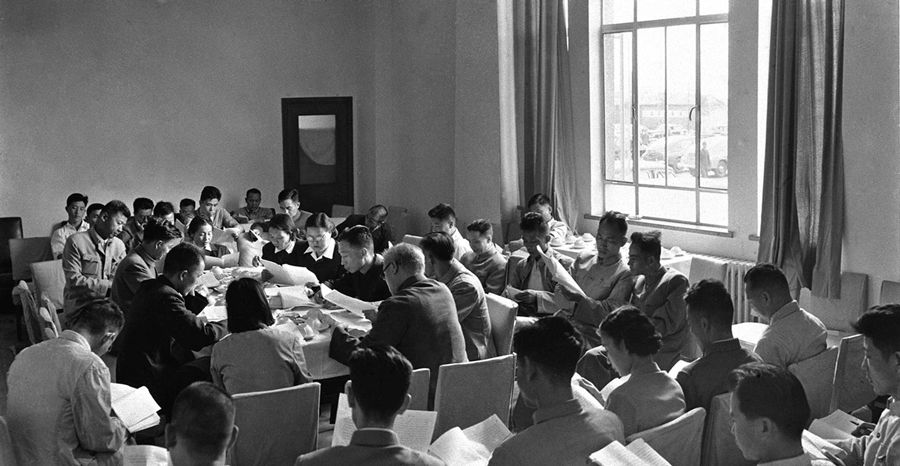 參加大會(huì)的代表在小組會(huì)上討論大會(huì)的報(bào)告。新華社圖片