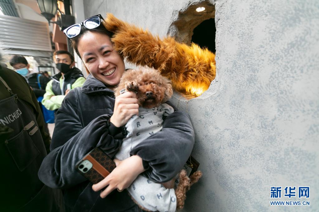 上海永康路上有個“網(wǎng)紅”熊爪咖啡,店長和店員都是聽障人士。客戶點單后,店員會從墻洞里伸出一只萌萌的熊爪,為客戶遞上一杯溫暖的咖啡。這是一名顧客與伸出洞口的“熊爪”互動(2020年12月4日攝)。新華社記者 王翔 攝