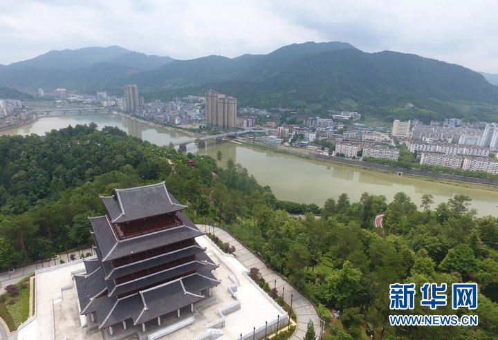 南平市順昌縣金溪和富屯溪兩溪交匯的觀靜山上的順昌閣和順昌縣城一角(無(wú)人機(jī)照片)。新華社記者林善傳攝