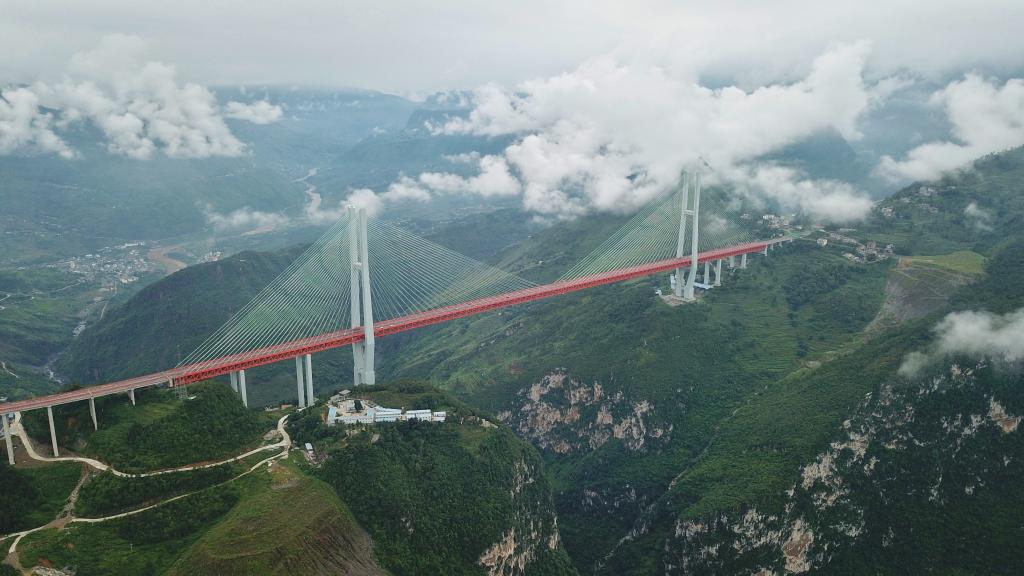 無人機(jī)航拍的北盤江大橋(2018年8月9日攝)。新華社記者歐東衢攝