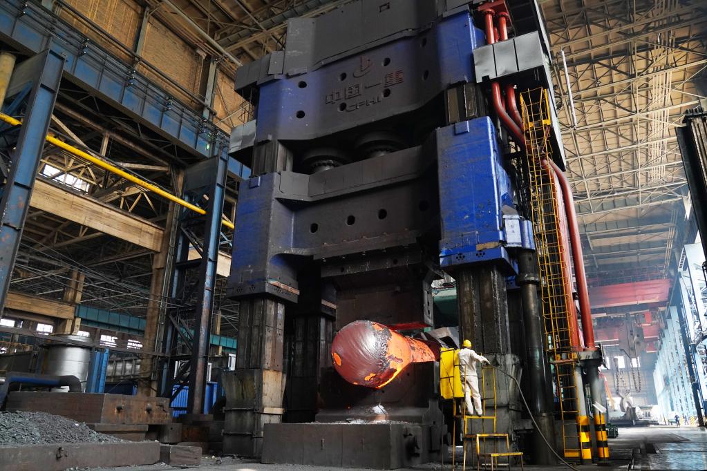 5月初,在中國一重集團(tuán)有限公司鑄鍛鋼事業(yè)部水壓機(jī)鍛造廠,廠長許四海正和工人操作萬噸水壓機(jī),一個(gè)紅彤彤的鋼坯在水壓機(jī)錘煉下,慢慢變成了大型工件。