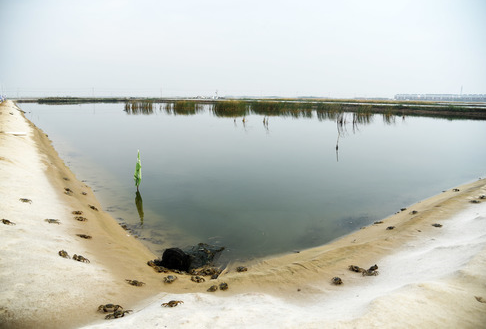 秋季,是位于黃河口的東營市墾利區(qū)大閘蟹收獲時節(jié),圖為當?shù)卮箝l蟹養(yǎng)殖區(qū)一角。新華社記者 王凱攝