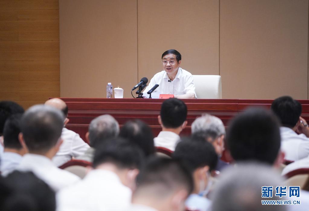 7月15日,黨史學習教育中央宣講團成員吳德剛在第六場報告會上作宣講報告。新華社記者 陳曄華 攝