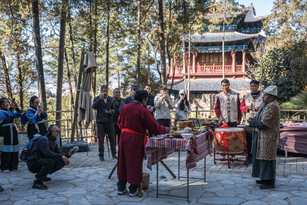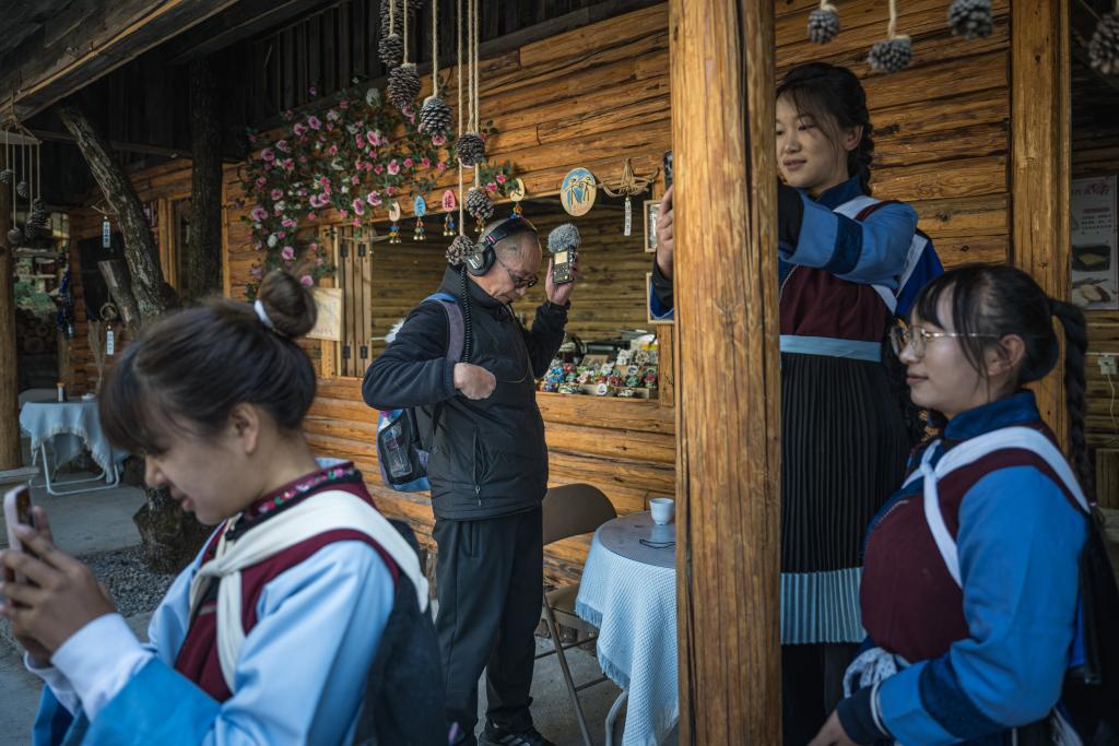 1月16日,和德华(左三)在丽江黑龙潭公园收集声音素材。