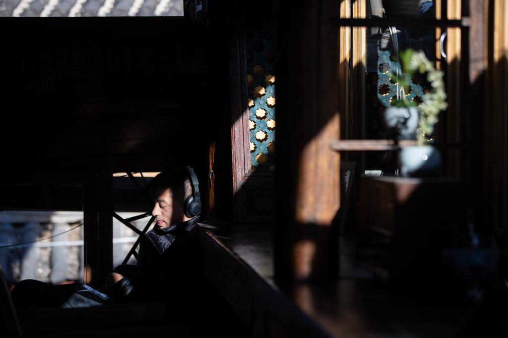 丽江古城五一街文治巷114号,富有节律的乐曲替代了往日门店里米线小吃的叫卖声。去年10月,在老宅20多年的租约到期后,和德华和妻子收回旧房,将其改造成一个分享音乐的空间,开放给过路的游客和久违的友人。