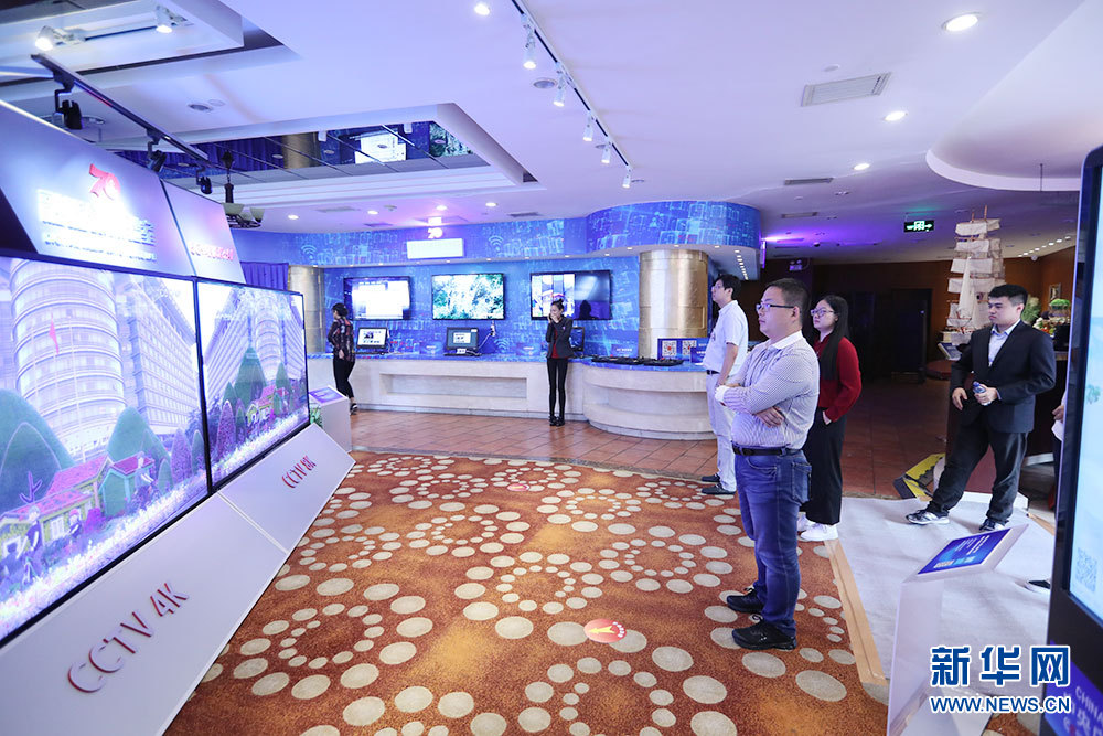 9月24日,慶祝中華人民共和國成立70周年活動新聞中心在北京梅地亞中心二層新聞發(fā)布廳舉辦第一場新聞發(fā)布會。圖為新聞中心設(shè)立的融媒體體驗(yàn)室。新華網(wǎng) 雷東瑞 攝