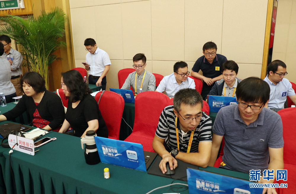 9月27日,慶祝中華人民共和國成立70周年活動(dòng)新聞中心在梅地亞中心二層新聞發(fā)布廳舉辦第三場新聞發(fā)布會(huì),中央農(nóng)村工作領(lǐng)導(dǎo)小組辦公室主任、農(nóng)業(yè)農(nóng)村部部長韓長賦,國務(wù)院扶貧開發(fā)領(lǐng)導(dǎo)小組辦公室主任劉永富介紹全面建成小康社會(huì),扎實(shí)推進(jìn)脫貧攻堅(jiān)和鄉(xiāng)村振興,并回答記者提問。圖為新華網(wǎng)對發(fā)布會(huì)進(jìn)行現(xiàn)場直播。新華網(wǎng) 陳杰 攝