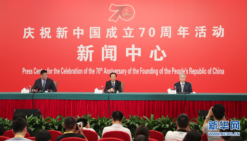9月27日,慶祝中華人民共和國(guó)成立70周年活動(dòng)新聞中心在梅地亞中心二層新聞發(fā)布廳舉辦第三場(chǎng)新聞發(fā)布會(huì),中央農(nóng)村工作領(lǐng)導(dǎo)小組辦公室主任、農(nóng)業(yè)農(nóng)村部部長(zhǎng)韓長(zhǎng)賦,國(guó)務(wù)院扶貧開發(fā)領(lǐng)導(dǎo)小組辦公室主任劉永富介紹全面建成小康社會(huì),扎實(shí)推進(jìn)脫貧攻堅(jiān)和鄉(xiāng)村振興,并回答記者提問(wèn)。圖為發(fā)布會(huì)現(xiàn)場(chǎng)。新華網(wǎng) 陳杰 攝