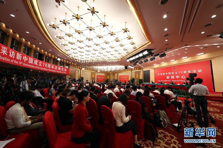 9月29日,慶祝中華人民共和國成立70周年活動新聞中心在北京梅地亞中心二層新聞發(fā)布廳舉辦第四場新聞發(fā)布會。圖為新聞發(fā)布會現(xiàn)場。新華網記者 焦鵬 攝