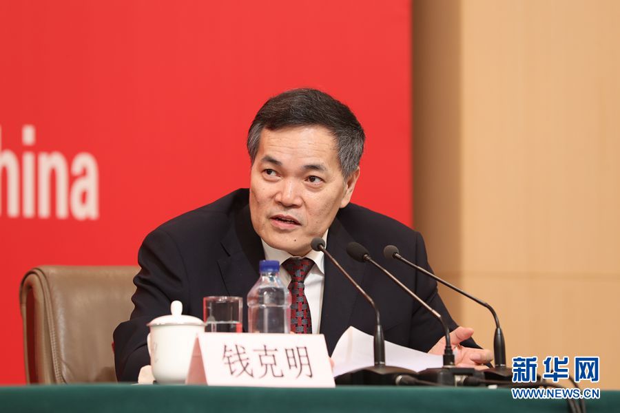 9月29日,慶祝中華人民共和國(guó)成立70周年活動(dòng)新聞中心在北京梅地亞中心二層新聞發(fā)布廳舉辦第五場(chǎng)新聞發(fā)布會(huì)。圖為商務(wù)部副部長(zhǎng)錢克明介紹相關(guān)情況。新華網(wǎng)記者 郭小天 攝?