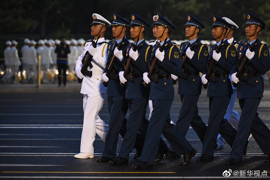 晨曦微露,裝點(diǎn)一新的東長(zhǎng)安街上,三軍列陣,鐵甲生輝,參加國(guó)慶70周年閱兵的全體受閱官兵集結(jié)完畢,雄姿英發(fā)、精神抖擻。由人民解放軍、武警部隊(duì)和民兵預(yù)備役部隊(duì)約15000名官兵、580臺(tái)(套)裝備組成的15個(gè)徒步方隊(duì)、32個(gè)裝備方隊(duì),沿東長(zhǎng)安街綿延向東約2公里;陸、海、空航空兵160余架戰(zhàn)機(jī),組成12個(gè)空中梯隊(duì),在北京周邊多個(gè)機(jī)場(chǎng)整裝待發(fā)。?